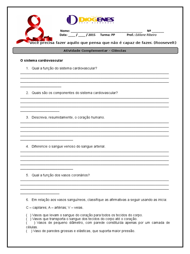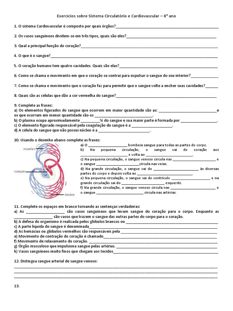 Exercício resolvido da questão 1. DC VS X FC. Exercícios sobre o Sistema Circulatório 8º ano com respostasQuestionário sobre sistema circulatório funções formação composição e estrutura.