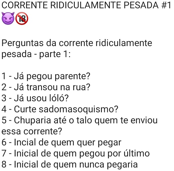 Orkutudo On Twitter Perguntas Da Corrente Ridiculamente Pesada Parte 1 Https T Co Ejincnn8cy Correnteridiculamentepesada Corrente Ridiculamente Pesada Https T Co 3arslov8mk Twitter